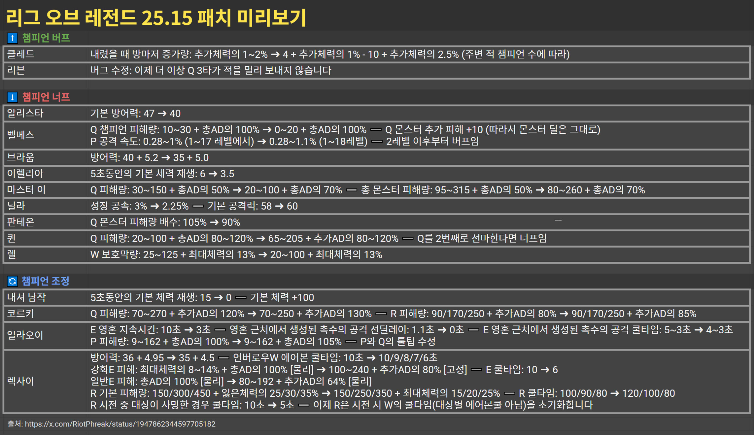 [📢소식] 25.15 밸런스 변경사항 (한국어)