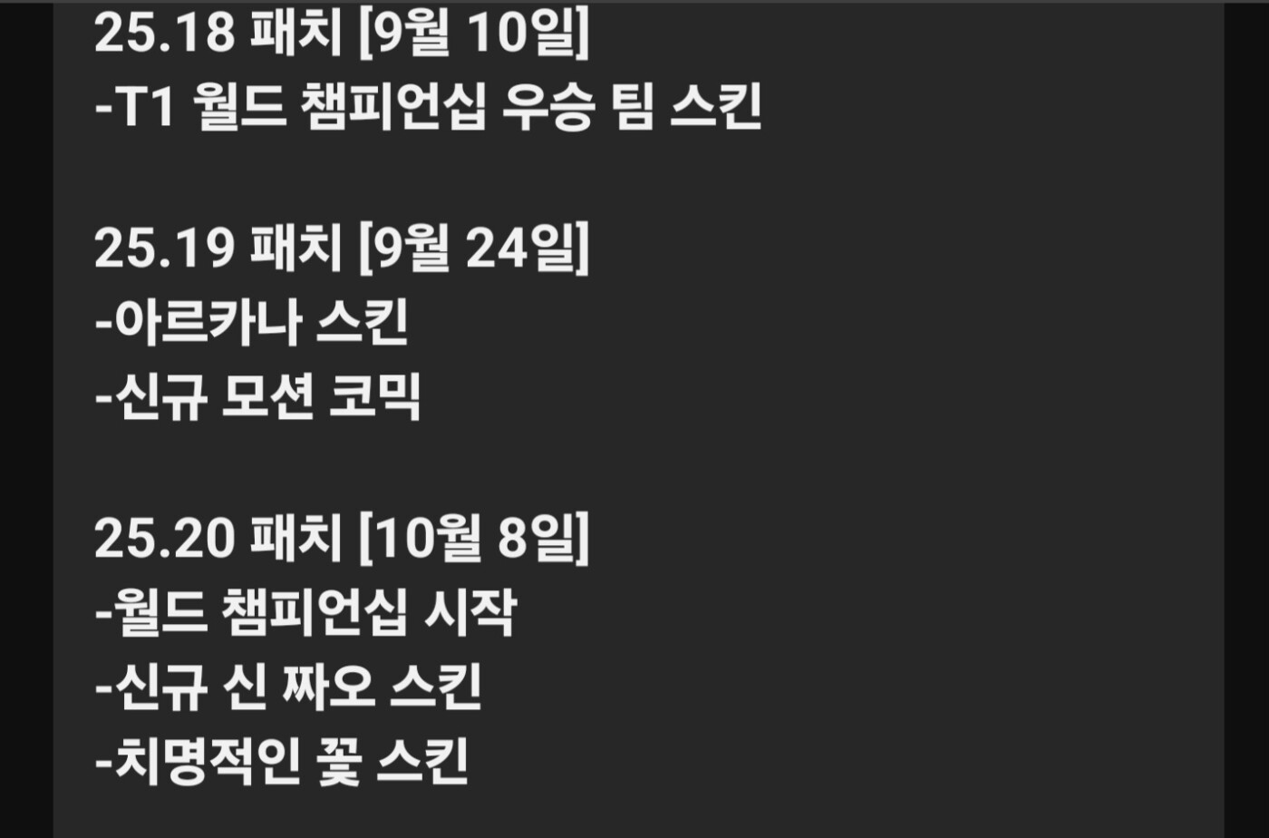 황혼의 시험 신짜오 (등급 및 가격은 미공개) t1짜오 영꽃짜오 날아가고 받은 스킨 퀄리티가 ㅋㅋㅋㅋㅋ 영상 막판이 짧게 등장한 리산드라 신스킨 뭔 시리즈인지 등급과 가격 모두 비공개 +추가 내용 9월 말에 아르카나 스킨 추가로 나올 예정 (진, 룰루는 배틀패스 스킨이고 상점판매 스킨이 더 나온다는 뜻) 10월 초에 짜오스킨이랑 리산스킨 나오는듯 이전에 없던 신규 스킨 시리즈