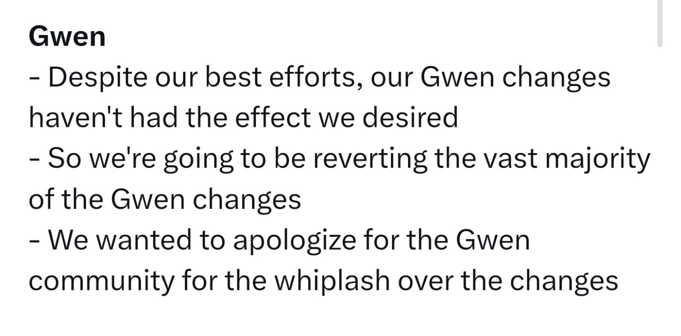 그웬 패치는 예상과 잘 맞지 않았습니다 따라서 대부분의 큰 패치들을 되돌립니다