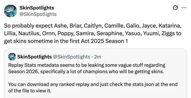 애쉬, 브라이어, 케틀, 카밀, 갈리오, 제이스, 카타리나, 릴리아, 노틸러스, 오른, 뽀삐, 사미라, 세라핀, 야스오, 유★미, 직스