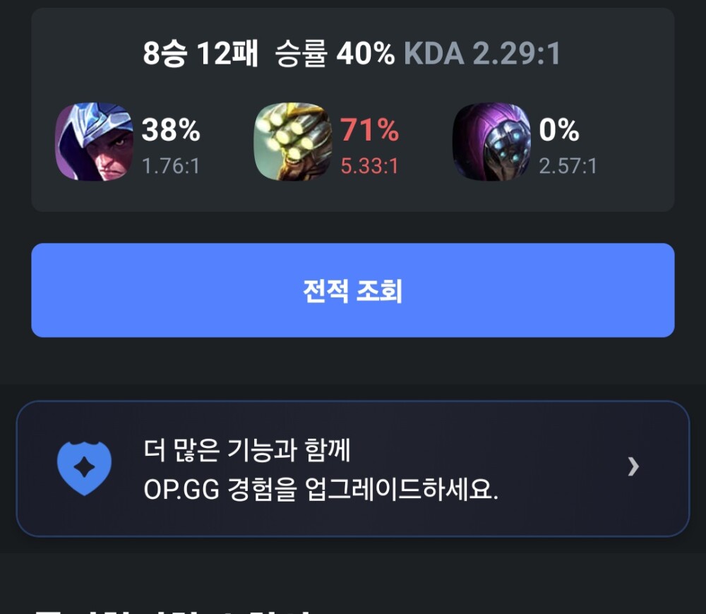 아무리 딴 챔을 연습해도 마이 숙련도랑 승률을 못따라옴