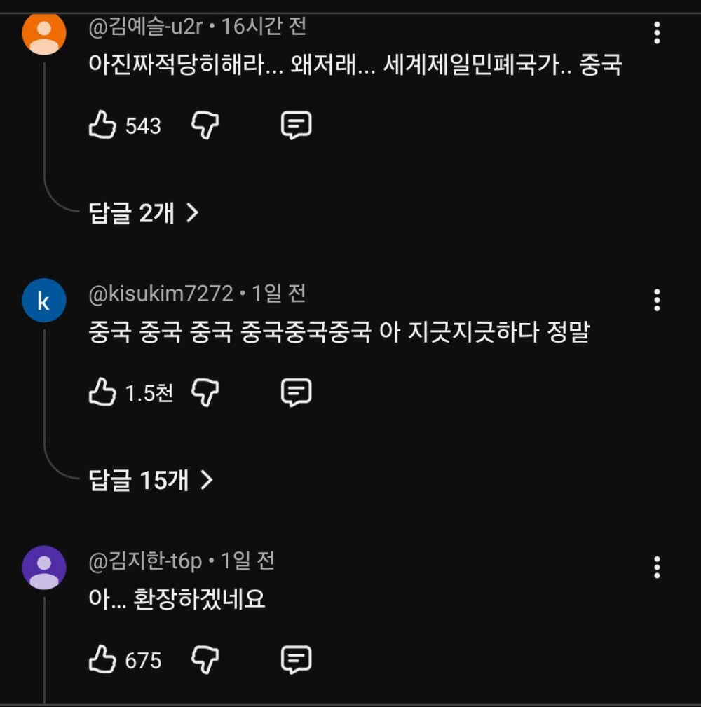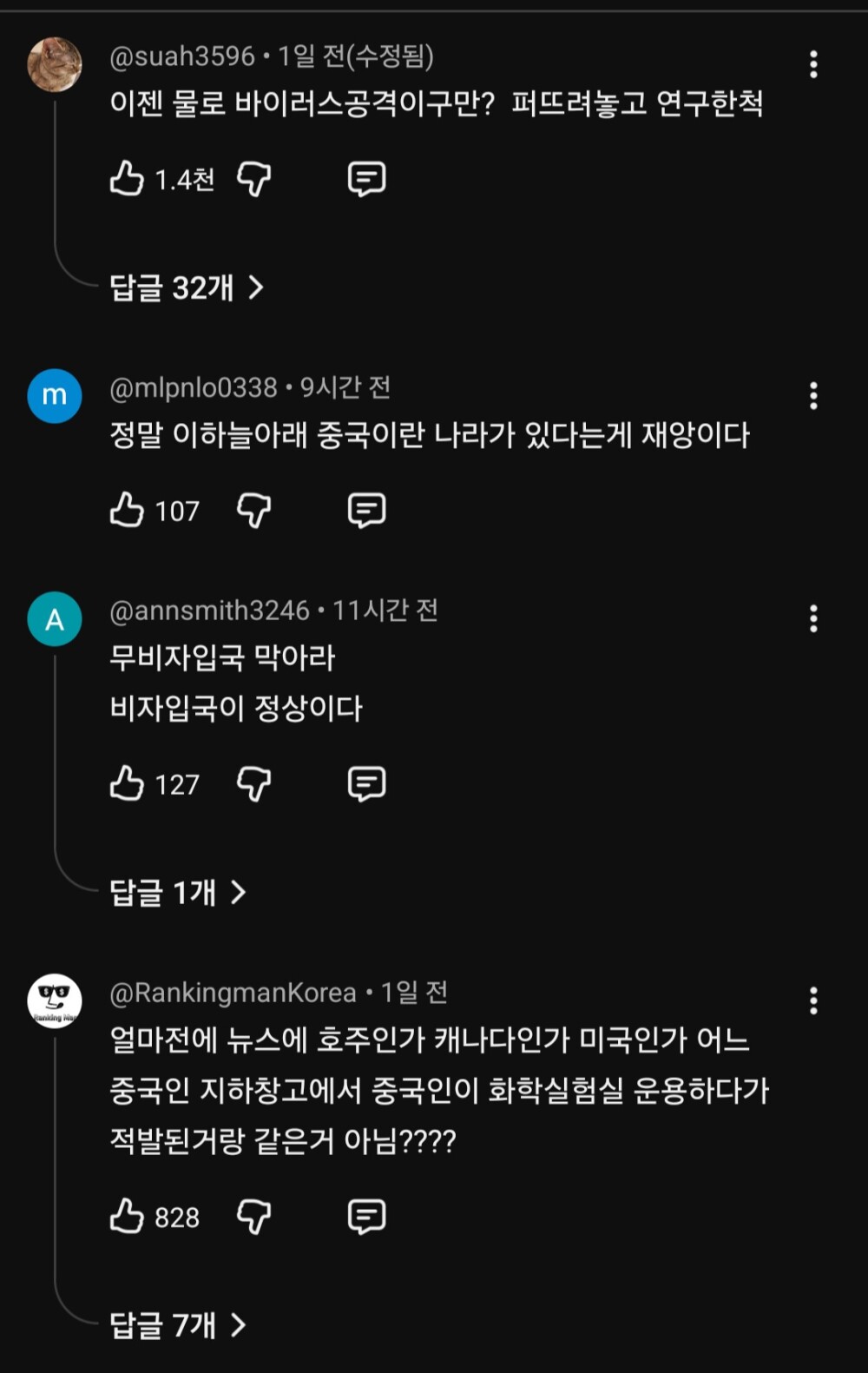 이 영상에 중국 연구진들이라는 말이 등장했다는 이유 하나만으로 댓글로 중국 욕하고, 음모론 퍼뜨리는게 맞다고 생각하는건가..? 이게 자신들이 욕하는 중국인들과 다를 바 없다는 사실을 모르는건가