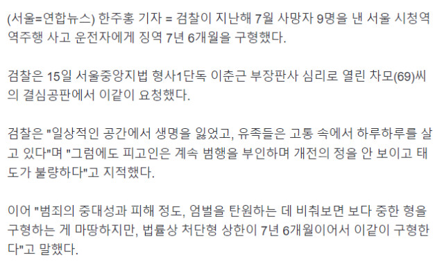 9명 사망한 '시청역 참사' 운전자에 징역 7년 6개월 구형